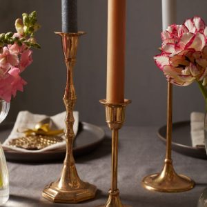 ANTIQUE GOLD RESIN PILLAR CANDLEHOLDERS