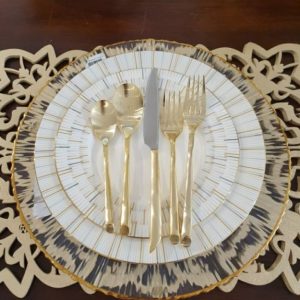WHITE MARBLE CHALLAH BOARD W GOLD EDGE