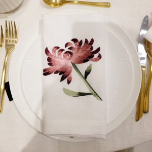 WHITE WITH BIG FLOWER NAPKIN 20X20