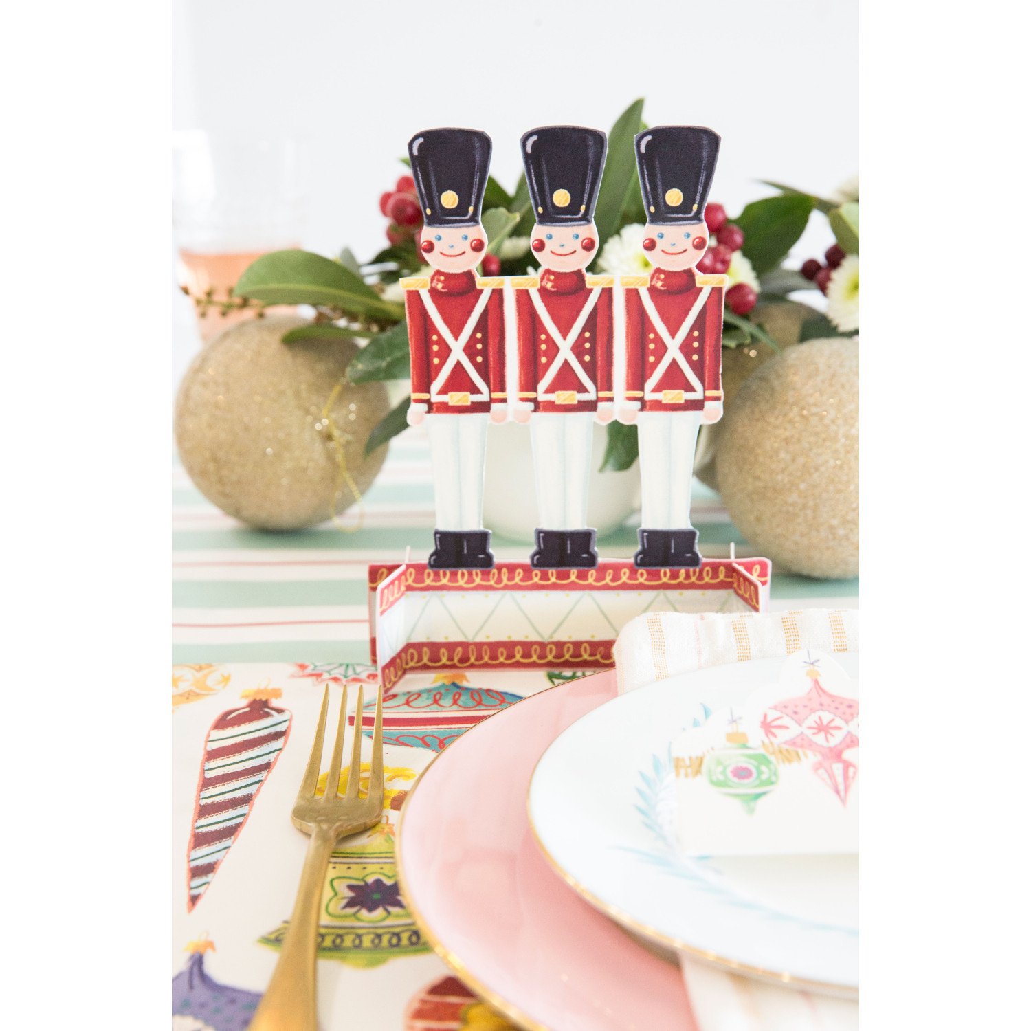 ¡Deje que estos soldados de juguete difundan un poco de alegría navideña en su próxima reunión! Los soldados vienen con 2 bases para mantenerse erguidos como decoración o tarjetas de gran lugar. Combínalo con otros artículos de nuestra colección navideña para crear un paraíso invernal.