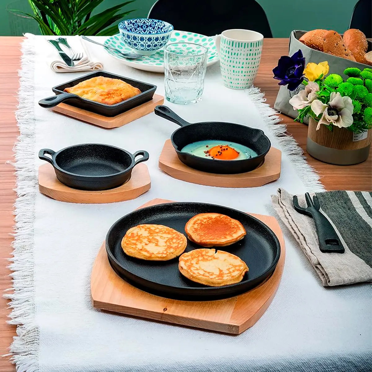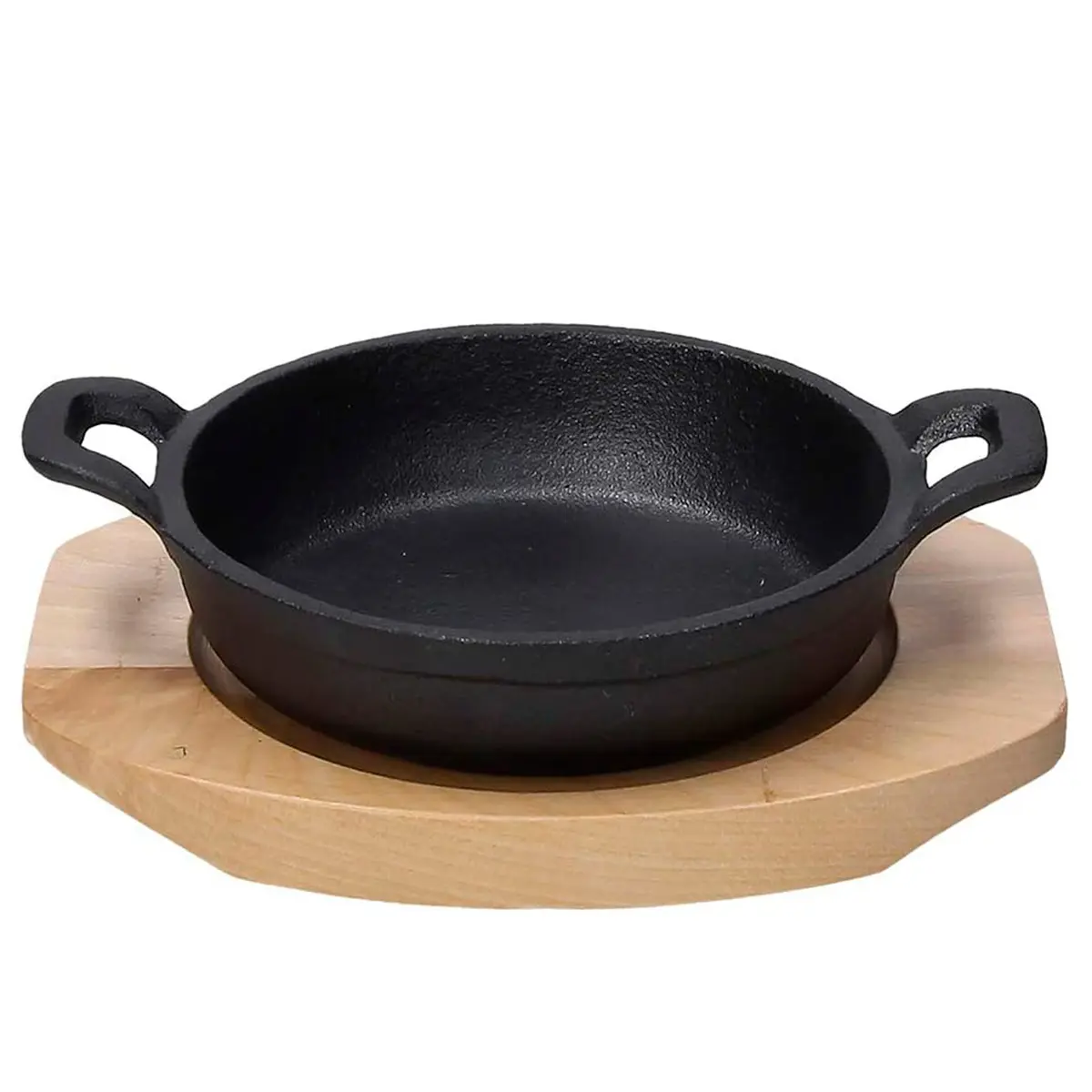 Con un cuerpo de hierro fundido, esta cacerola de 11CM ofrece una cocción uniforme y resultados excepcionales. Sus dos asas proporcionan un manejo seguro y cómodo, mientras que la base de madera no solo aporta un toque de sofisticación a tu cocina, sino que también protege las superficies de tu mesa y encimera.