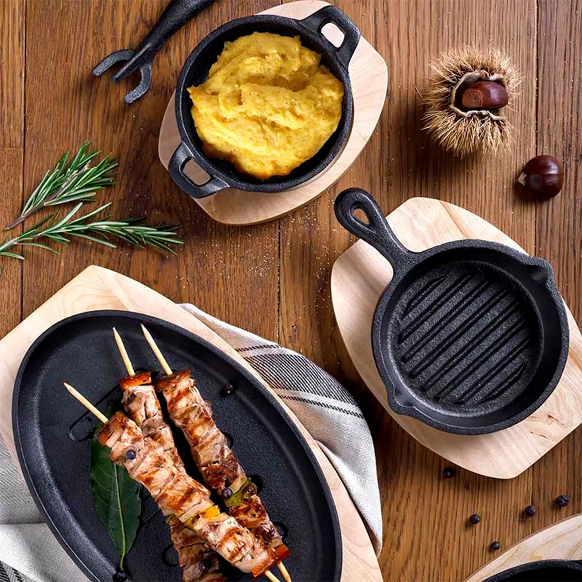 Cacerola 2 Asas de Hierro Fundido 11CM Fusion Taste con Base de Madera de Tognana
