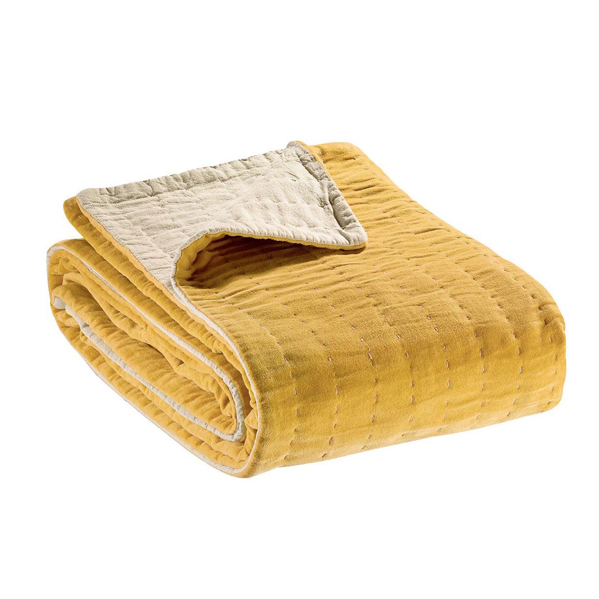 El plaid Vivaraise Elise, es 100% algodón y mide 140X200 cm. Un plaid precioso con una cara de terciopelo de algodón pespunteado en colores brillantes y el revés en cambray de algodón color lino. La colección Elise tiene un tacto único y suave, es una prenda perfecta para los días fríos. Utilízalo en tu sofá o en la cama.